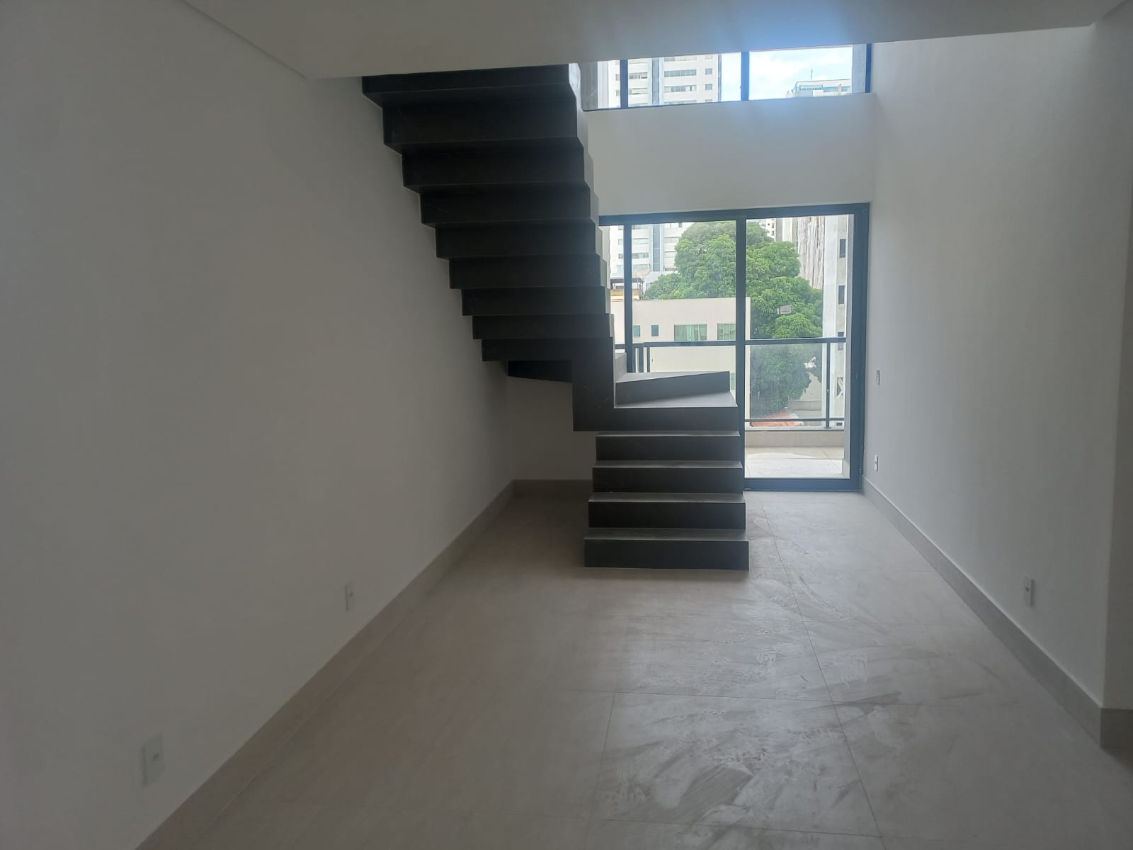 Varanda Privativa: Um refúgio particular com pé-direito duplo logo no primeiro nível.