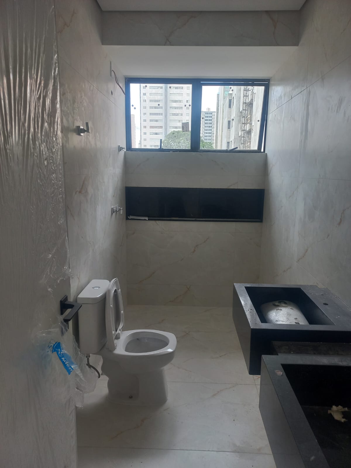 Banheiros de Luxo: Bancadas em granito esculpido, trazendo um design clean e sofisticado.